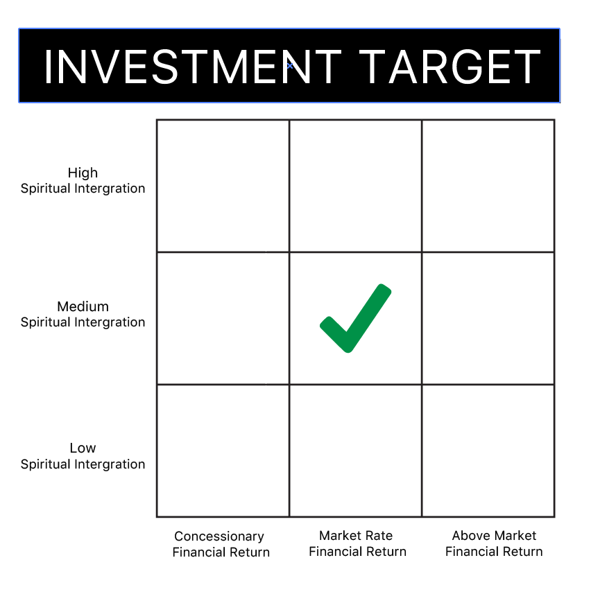 Faith Driven Investing can span a wide range from high yield to concessionary returns that have a higher level of spiritual integration. Having clear expectations of this philosophy is key for the movement. Each investment is unique and you might want to select multiples but if you had to choose one quadrant that best fits your groups spiritual integration and financial performance targets … What would it be?