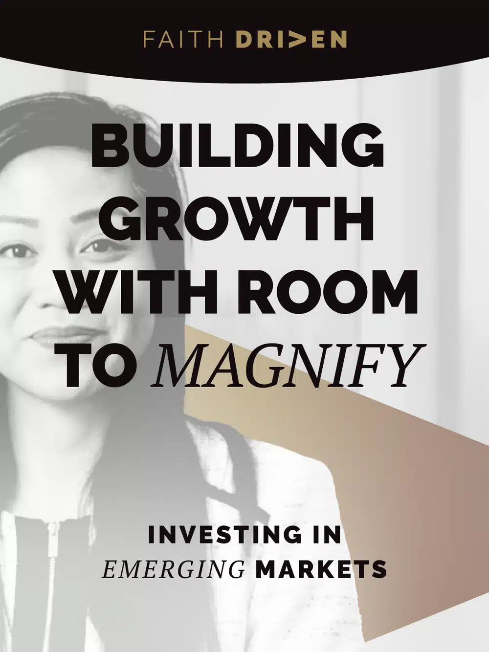 As Faith Driven Investors, we have the opportunity to shape the culture, and the way business can be done in parts of the world where the markets are growing rapidly through innovation. The compounding impact of that can literally shape companies, cities, markets and entire nations for generations to come.