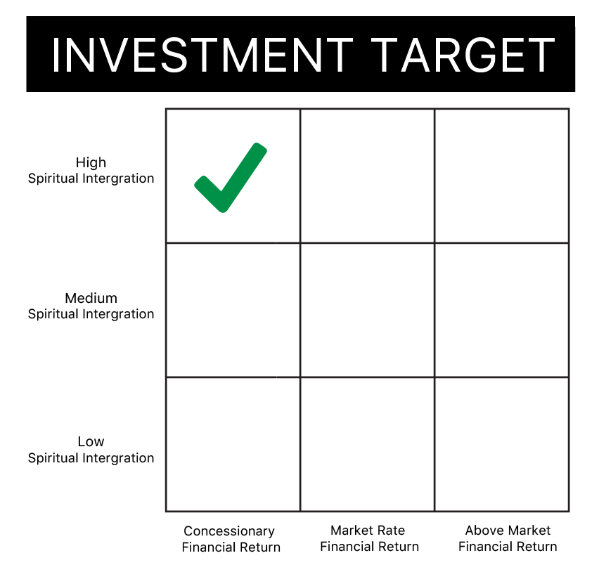 Faith Driven Investing can span a wide range from high yield to concessionary returns that have a higher level of spiritual integration. Having clear expectations of this philosophy is key for the movement. Each investment is unique and you might want to select multiples but if you had to choose one quadrant that best fits your groups spiritual integration and financial performance targets … What would it be?
